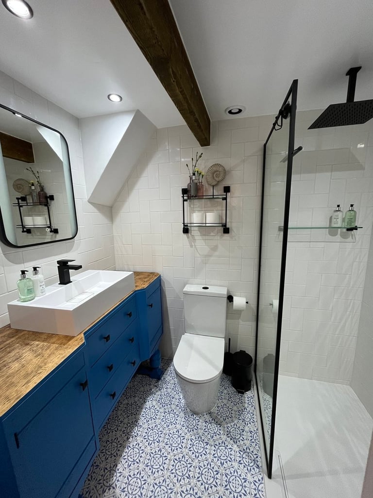 Luxury bathroom with rainfall shower